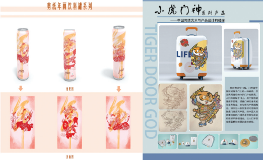 7.武汉学院产品设计1901班何玉玺同学的艺术作品《剪纸系列包装》、旷润泽同学的艺术作品《小虎门神系列产品》