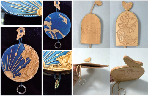 5. 武汉学院工艺美术2102班周仁凯同学艺术作品《抽拉式钥匙包》;工艺美术2101班艾欣欣同学艺术作品《抽拉式钥匙包》