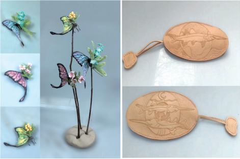 2.武汉学院工艺美术2001班王欣茹同学艺术作品《与春同频》;工艺美术2101班陈思豪同学艺术作品《抽拉式钥匙包》