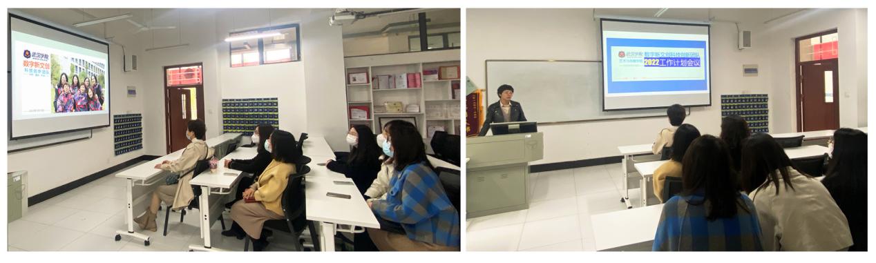 2022年3月18日中午,艺术与传媒学院数字新文创科技创新团队成员在5号学院楼5209会议室召开了2022年工作计划会议。团队负责人卢春梅副教授主持会议。会议主要讨论了三个方面的工作:1.总结前期工作成果成效;2.团队建设目前存在的问题;3.2022年团队工作重点及规划。