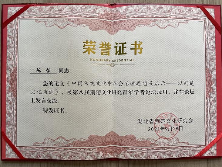 为深入学习习总书记治国理政重要思想,开展社会治理研究,探索荆楚文化在加强社会治理中的作用,着力推进荆楚文化青年人才培养和队伍建设,2021年9月18日,由湖北省社会科学界联合会、湖北省社会科学院、湖北省荆楚文化研究会联合举办的“第八届荆楚文化研究青年学者论坛”隆重举行。论坛以“荆楚文化与社会治理”为主题,五十多名专家学者齐聚一堂,研讨荆楚文化与社会治理。本次论坛除邀请湖北省内各大中专院校、党校、社科研究机构、实际工作部门的青年学者与会交流学术成果外,还邀请了省社科院原副院长、省荆楚文化研究会副会长刘玉堂教授,武汉大学社会学学院桂胜教授,湖北大学公共管理学院副院长李荣娟教授对参会论文进行指导和点评。我校会计学院陈怡、信息工程学院龚鸣敏、马克思主义学院李玲三位老师受邀参会,其中会计学院团委书记陈怡老师就其提交的论文《中国传统文化中社会治理思想及启示——以荆楚文化为例》,受邀做了会议交流发言。