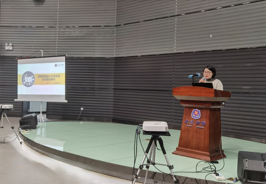 外语学院周英老师以“课程思政融入大学英语教学路径研究”为主题,从课程思政、大学英语、融入路径和案例展示四个方面,向与会老师介绍了她的教学及课程研究经验。课程思政的内涵在于以构建全员、全程、全课程育人格局的形式将各类课程与思想政治理论课同向同行,形成协同效应,把“立德树人”作为教育的根本任务的一种综合教育理念。将课程思政融入大学英语主要路径在于:课前结合教学目标与内容进行思政元素挖掘;课中结合教学活动与方法将思政活动融于课堂;课后进行多元的教学主体与评价,将思政融入作业进行巩固。