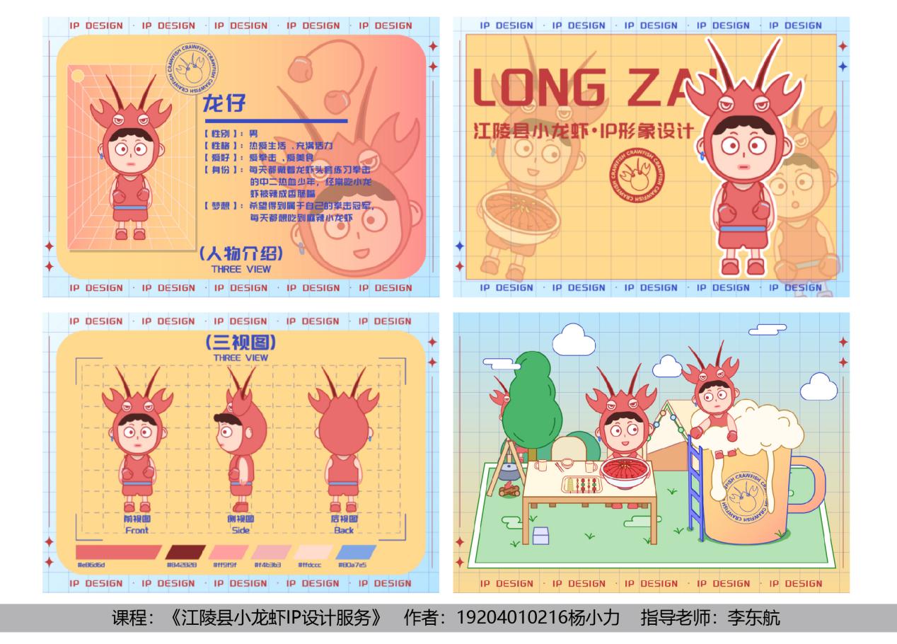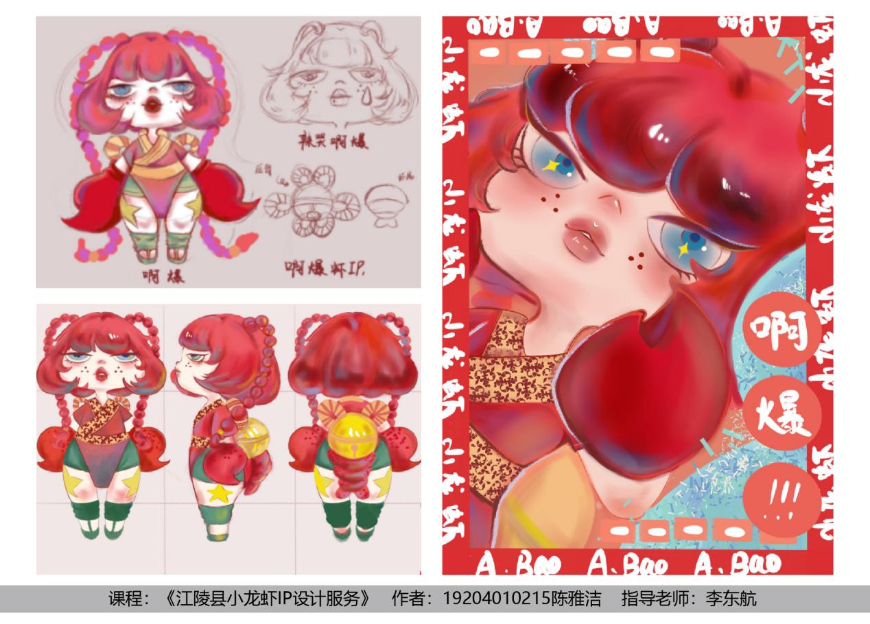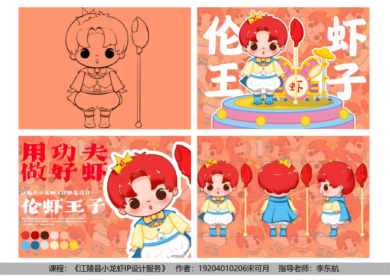 在艺术与传媒学院开设的课程中,李东航老师以“江陵县小龙虾IP设计服务”为课程申请开放实验室,以学生参与科研的形式,把真实案例代入到课堂中,在媒介融合实验室5102,15名学生完成了该项目的课堂转化作品的视觉输出。学生经过理论联系实际的系统训练,产出了一批高质量的作品。