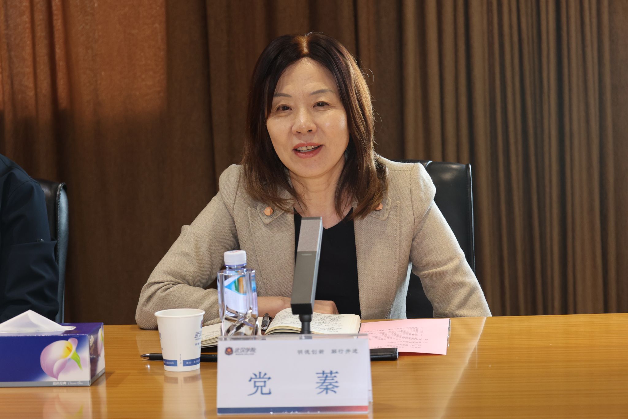 党蓁在总结讲话中表示,通过此次考察对武汉学院有了全新认识,对学校秉持公益性办学初心、突出的办学特色、灵活的体制机制以及学生就业情况给予高度赞赏。她指出,省工商联作为政府与民营企业的桥梁纽带,正致力于推动湖北“民营经济强省”建设,与武汉学院民营企业创新发展研究中心的发展方向高度契合。未来,双方将探索建立常态化合作机制,围绕民营经济发展中的重点难点问题联合开展课题研究,共同为湖北省民营经济高质量发展和“十五五”规划编制贡献智慧与力量。