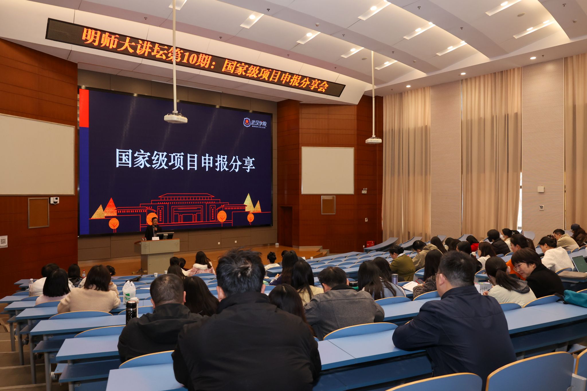 2025年12月1日下午,科研处举办的第10期“明师大讲坛”在中教2103报告厅举行。安徽财经大学党委常委、副校长宋马林教授应邀专题分享国家级科研项目申报经验。本期大讲坛由我校副校长罗航教授主持,各院部领导、博士及教师代表参会。
