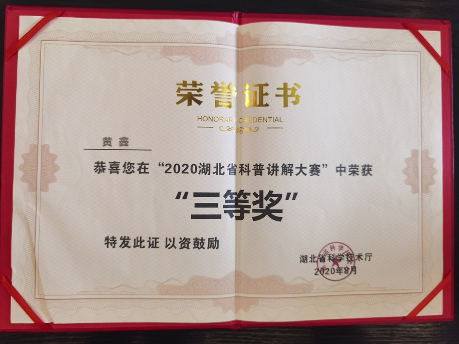 比赛分为预赛和决赛两轮。受疫情影响,本届大赛在筹备和组织过程中遇到很多困难,预赛决定采用视频录制、远程评审的方式。武汉学院科学技术协会、武汉学院大学生科学技术协会接到大赛通知后高度重视,第一时间通过官网发布比赛信息,推动比赛报名。同时,通过微信等渠道组织了科普讲解大赛筹备团队,为后续选手选拔及参赛指导做好准备。在2019年度校科普讲解大赛的基础上,推荐石梓渊、黄鑫和李富豪3位同学代表学校参加预赛,马光菊、谢光玉和甘霞等老师为大赛指导老师团队。经专家组评审,黄鑫同学从参加预赛的一百多名候选人中脱颖而出,入选决赛。
