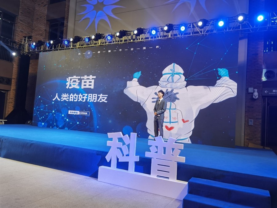 决赛中,来自各单位的选手八仙过海,各显神通。黄鑫以《疫苗——人类的好朋友》为题开讲,他紧扣大赛主题,以新冠肺炎疫苗研发为例,阐释了疫苗诞生过程及对人体免疫的意义,最后落脚病毒固然可怕,但任何问题都有科学的解决办法。他生动形象的演讲及稳健的台风赢得了评委的一致好评。